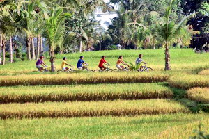 Sambil bersepeda menyusuri hamparan persawahan akan menjadi pengalaman yang menarik.