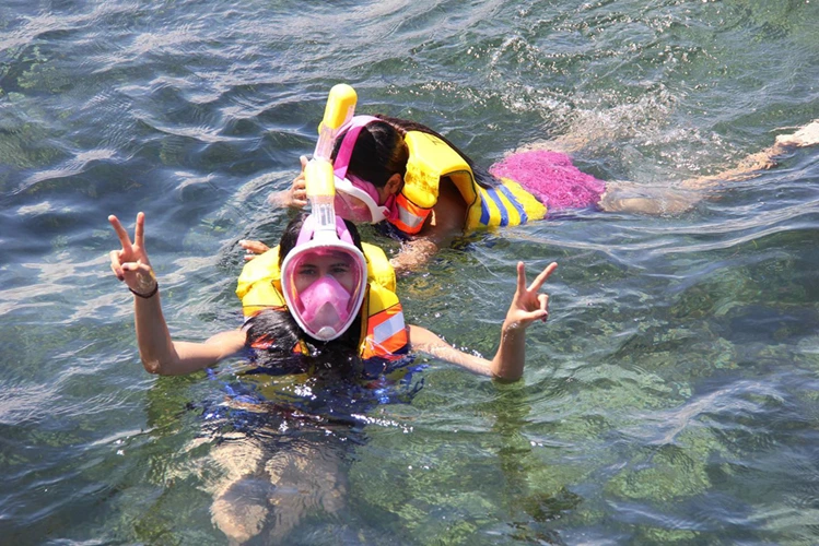 利用説明後、専用のポンツーンに移動して、水深2.5-4Mの水中散策を25分程度楽しみます。 |