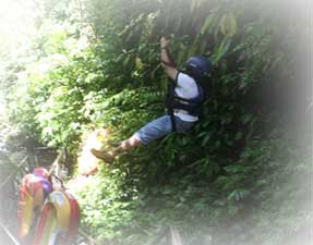 印象的な滝の上に、実際に渓谷を飛ぶように「フライングフォックス80メートルを建設しました。