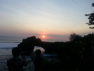 バリ島でもベスト3に入る人気の名所タナロット寺院の見学と夕日鑑賞。