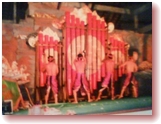 ポレンと呼ばれる白黒格子柄の布を腰に巻いた50〜100人の半裸の男達による「声のガムラン」。